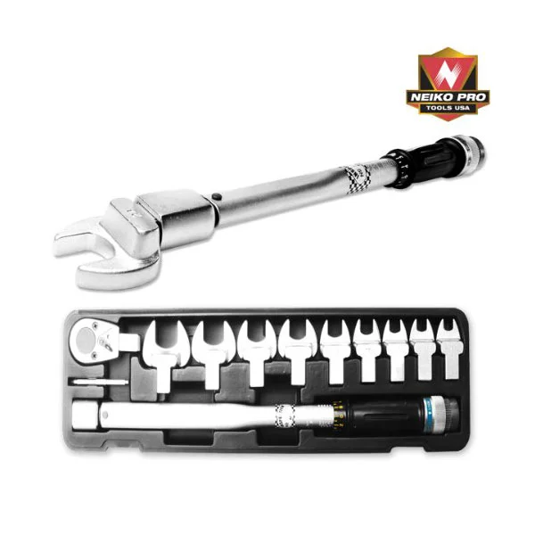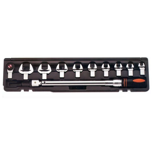 - Interchangeable heads permit ratcheting, fixed, or open end torquing capability with adjustable torque wrench bodies.