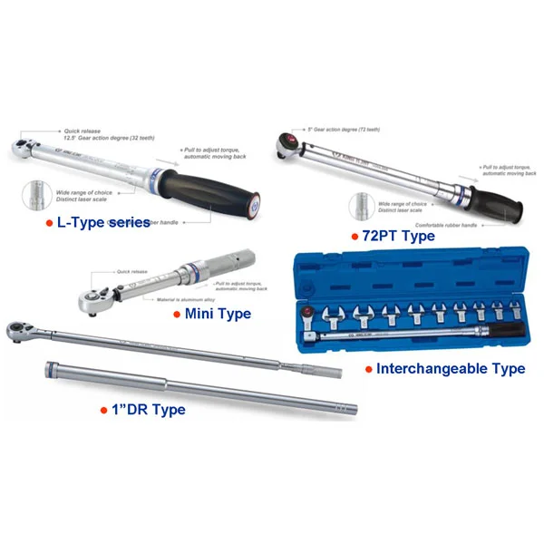 The interchangeable torque wrenches are designed for use on production lines and other applications where a specific torque is required for repetitive operations.